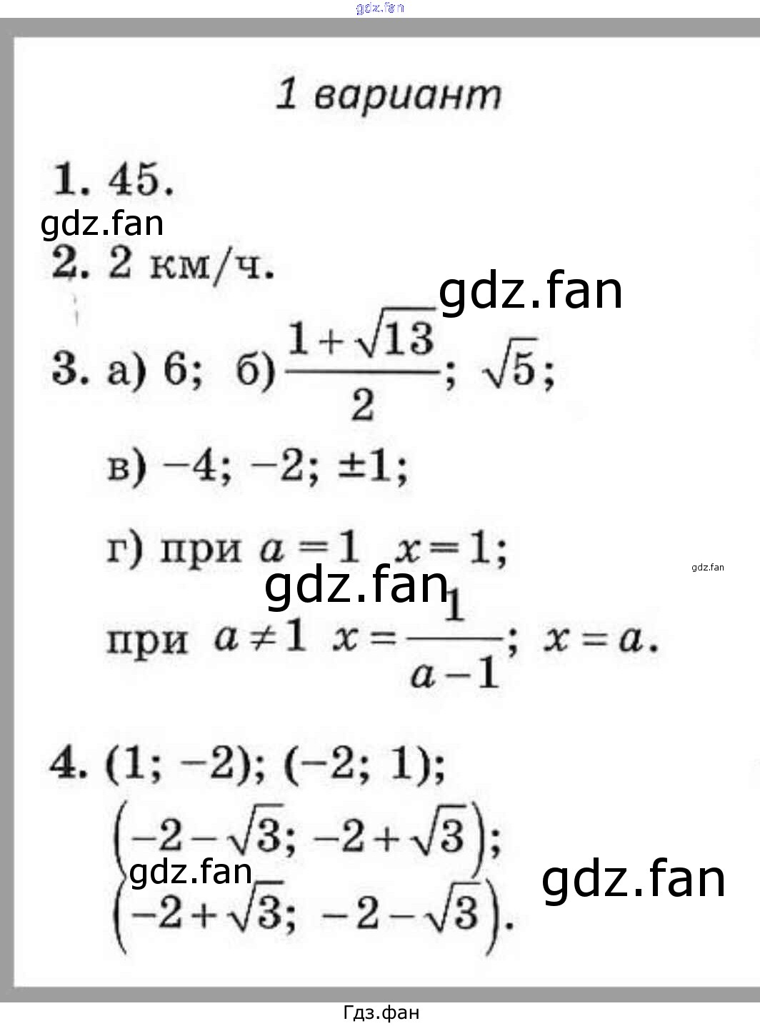 контрольная работа 3. квадратные уравнения (вариант) / 1