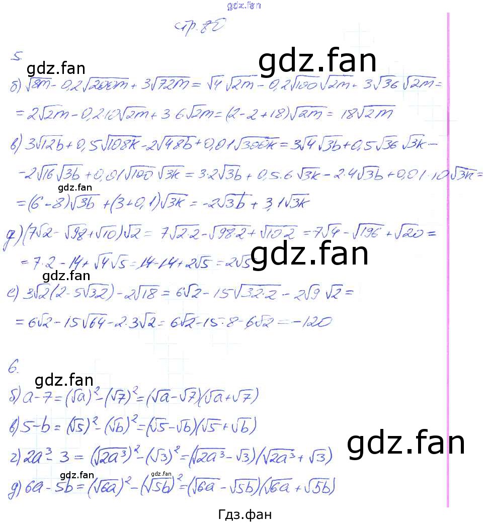 Проверка домашнего задания всегда занимает большое количество времени. На помощь приходит ГДЗ фан по Алгебре восьмого класса. Здесь собраны популярные ответы на 80 (задание 5, 6) Алгебра 8 класс рабочая тетрадь Ключникова Е.М. (к уч. Мордковича)