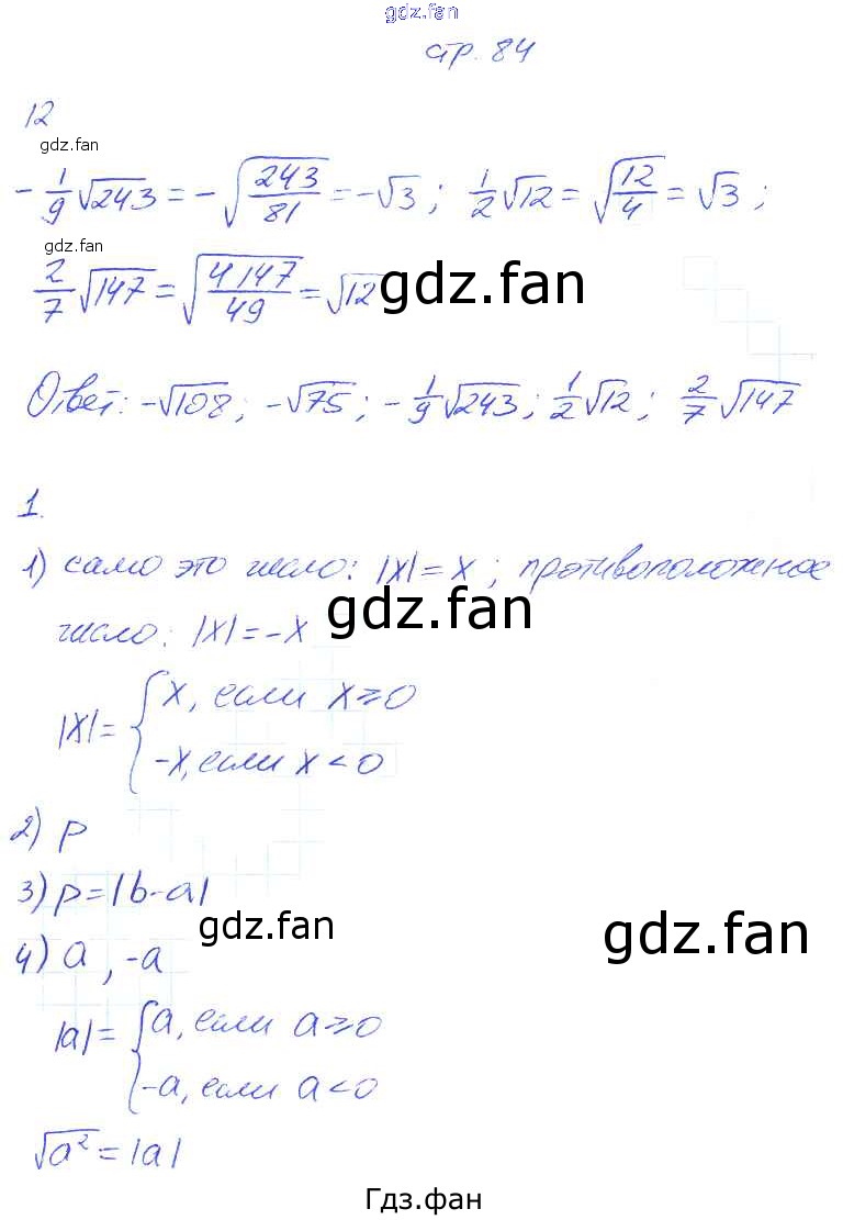 Проверка домашнего задания всегда занимает большое количество времени. На помощь приходит ГДЗ фан по Алгебре восьмого класса. Здесь собраны популярные ответы на 84 (задание 12, 1) Алгебра 8 класс рабочая тетрадь Ключникова Е.М. (к уч. Мордковича)