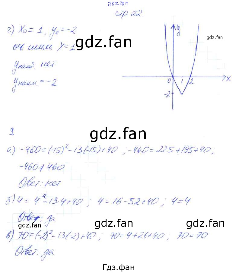 Проверка домашнего задания всегда занимает большое количество времени. На помощь приходит ГДЗ фан по Алгебре восьмого класса. Здесь собраны популярные ответы на 22 (задание 9) Алгебра 8 класс рабочая тетрадь Ключникова Е.М. (к уч. Мордковича)