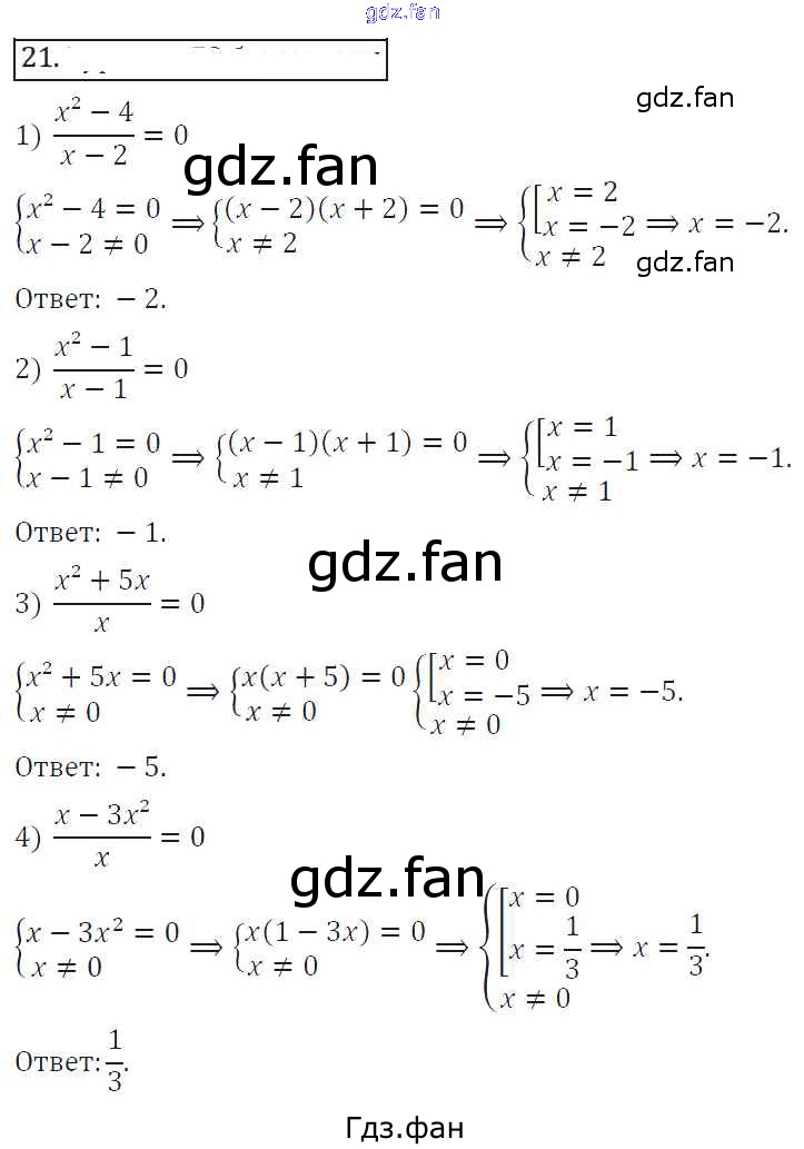 Проверка домашнего задания всегда занимает большое количество времени. На помощь приходит ГДЗ фан по Алгебре восьмого класса. Здесь собраны популярные ответы на 21 (стр. 12) Алгебра 8 класс Колягин Ю.М.
