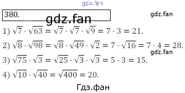 Проверка домашнего задания всегда занимает большое количество времени. На помощь приходит ГДЗ фан по Алгебре восьмого класса. Здесь собраны популярные ответы на 380 (стр. 152) Алгебра 8 класс Колягин Ю.М.