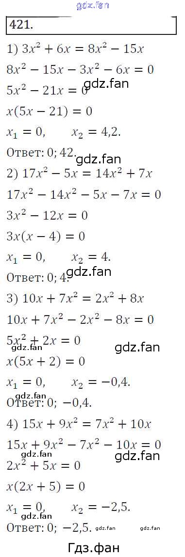 Проверка домашнего задания всегда занимает большое количество времени. На помощь приходит ГДЗ фан по Алгебре восьмого класса. Здесь собраны популярные ответы на 421 (стр. 168) Алгебра 8 класс Колягин Ю.М.