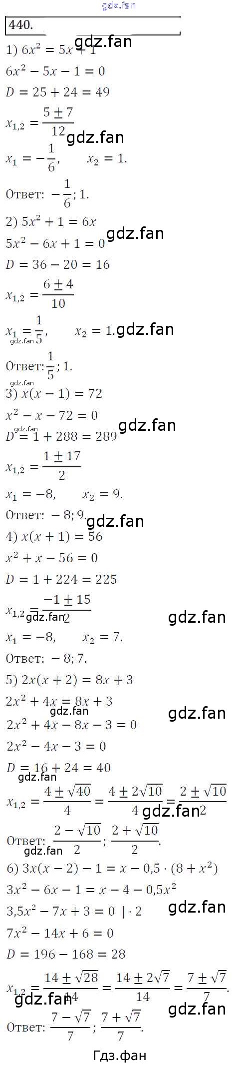 Проверка домашнего задания всегда занимает большое количество времени. На помощь приходит ГДЗ фан по Алгебре восьмого класса. Здесь собраны популярные ответы на 440 (стр. 176) Алгебра 8 класс Колягин Ю.М.
