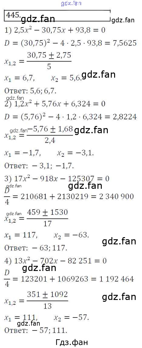 Проверка домашнего задания всегда занимает большое количество времени. На помощь приходит ГДЗ фан по Алгебре восьмого класса. Здесь собраны популярные ответы на 445 (стр. 177) Алгебра 8 класс Колягин Ю.М.