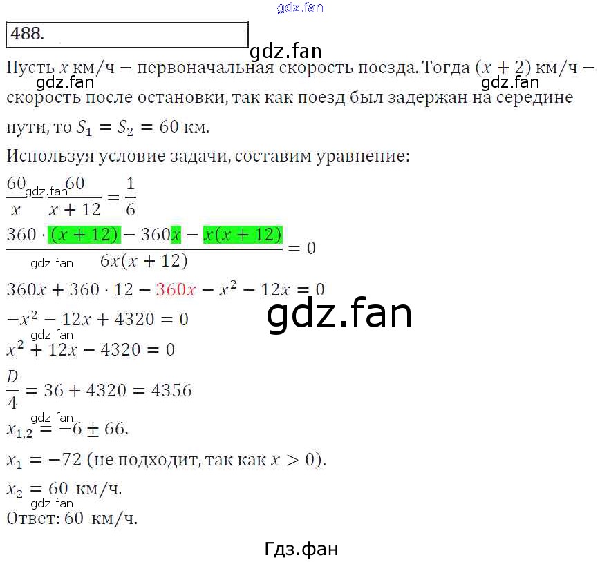 Проверка домашнего задания всегда занимает большое количество времени. На помощь приходит ГДЗ фан по Алгебре восьмого класса. Здесь собраны популярные ответы на 488 (стр. 197) Алгебра 8 класс Колягин Ю.М.