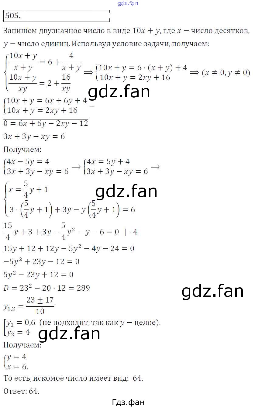Проверка домашнего задания всегда занимает большое количество времени. На помощь приходит ГДЗ фан по Алгебре восьмого класса. Здесь собраны популярные ответы на 505 (стр. 203) Алгебра 8 класс Колягин Ю.М.