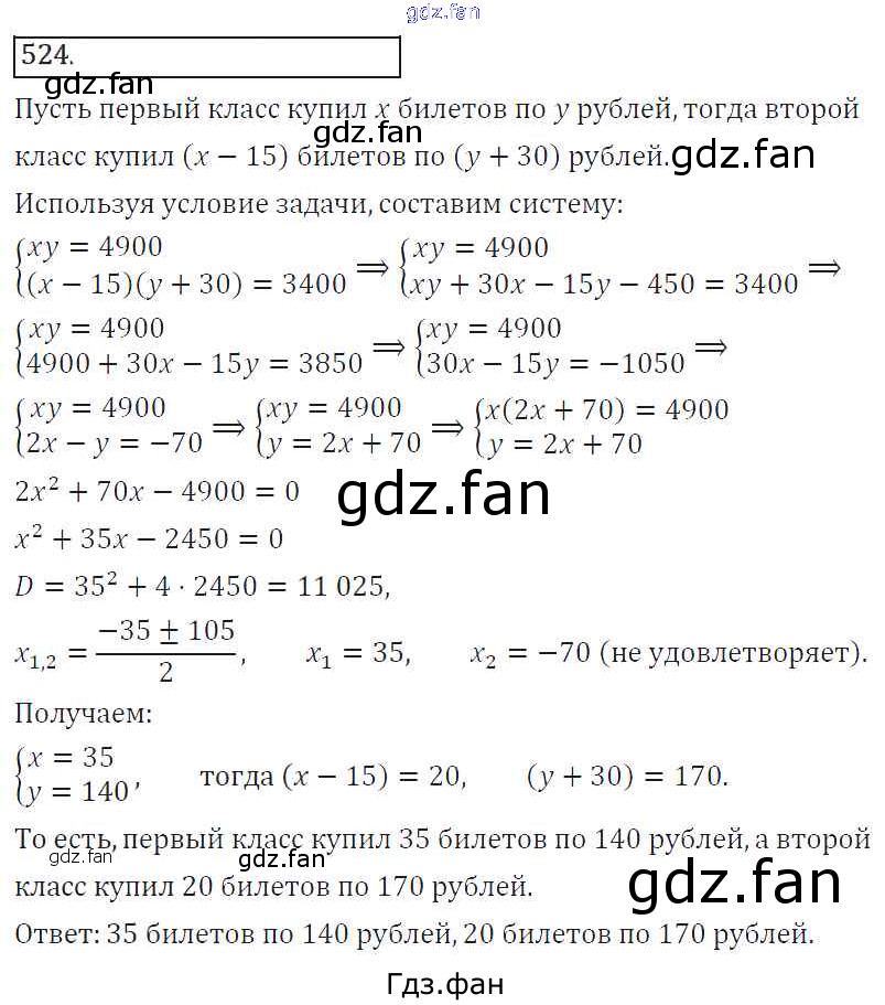 Проверка домашнего задания всегда занимает большое количество времени. На помощь приходит ГДЗ фан по Алгебре восьмого класса. Здесь собраны популярные ответы на 524 (стр. 213) Алгебра 8 класс Колягин Ю.М.