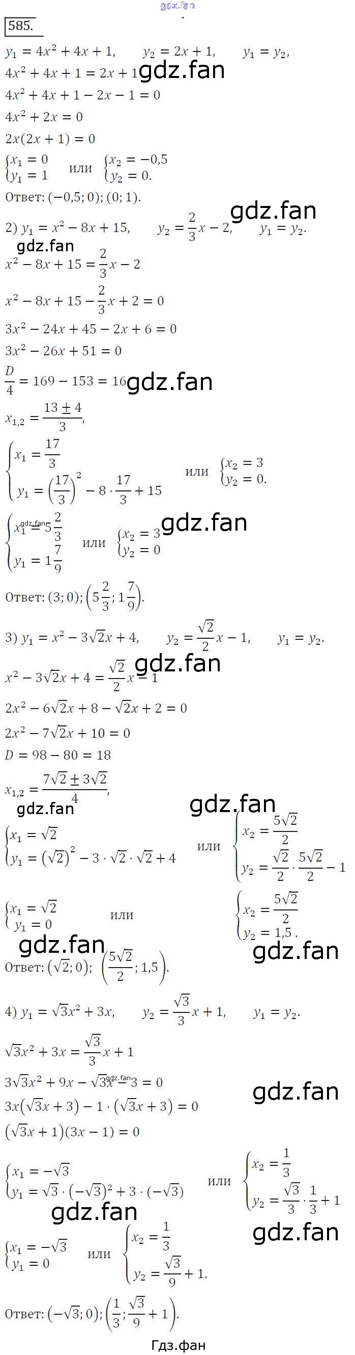 Проверка домашнего задания всегда занимает большое количество времени. На помощь приходит ГДЗ фан по Алгебре восьмого класса. Здесь собраны популярные ответы на 585 (стр. 228) Алгебра 8 класс Колягин Ю.М.