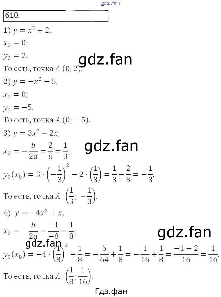 Проверка домашнего задания всегда занимает большое количество времени. На помощь приходит ГДЗ фан по Алгебре восьмого класса. Здесь собраны популярные ответы на 610 (стр. 245) Алгебра 8 класс Колягин Ю.М.