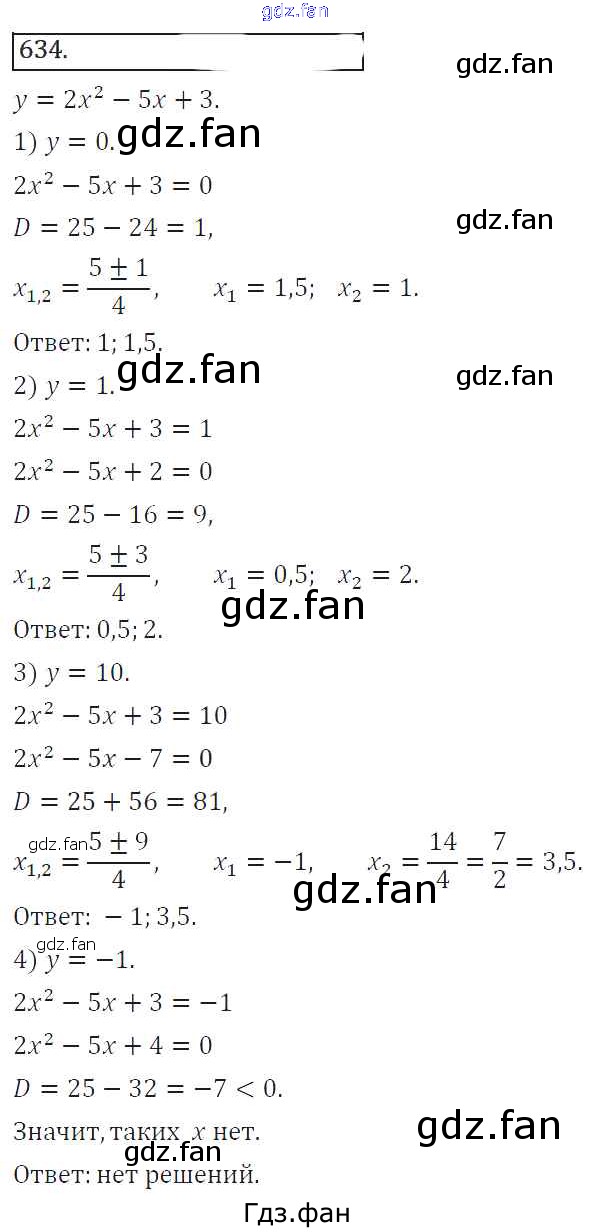 Проверка домашнего задания всегда занимает большое количество времени. На помощь приходит ГДЗ фан по Алгебре восьмого класса. Здесь собраны популярные ответы на 634 (стр. 255) Алгебра 8 класс Колягин Ю.М.