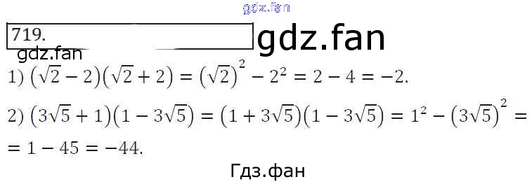 Проверка домашнего задания всегда занимает большое количество времени. На помощь приходит ГДЗ фан по Алгебре восьмого класса. Здесь собраны популярные ответы на 719 (стр. 287) Алгебра 8 класс Колягин Ю.М.