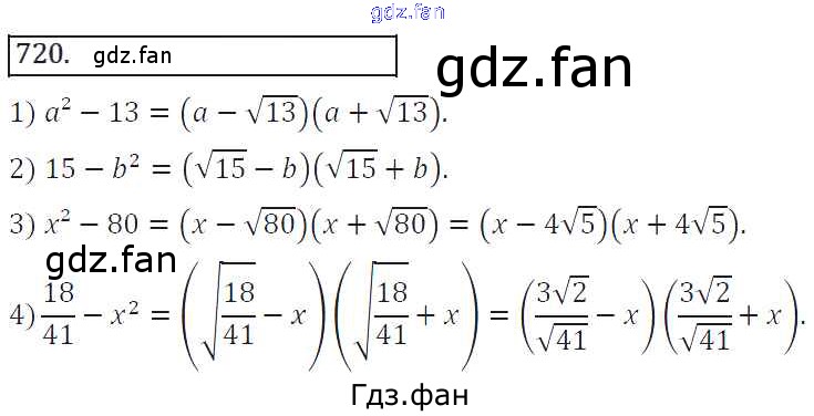 Проверка домашнего задания всегда занимает большое количество времени. На помощь приходит ГДЗ фан по Алгебре восьмого класса. Здесь собраны популярные ответы на 720 (стр. 287) Алгебра 8 класс Колягин Ю.М.