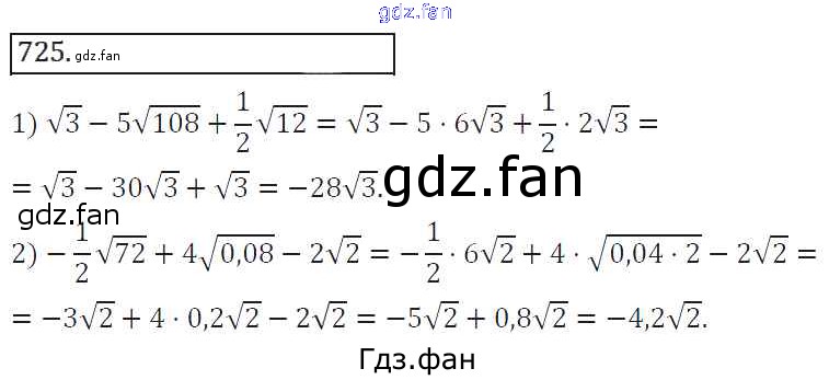 Проверка домашнего задания всегда занимает большое количество времени. На помощь приходит ГДЗ фан по Алгебре восьмого класса. Здесь собраны популярные ответы на 725 (стр. 287) Алгебра 8 класс Колягин Ю.М.