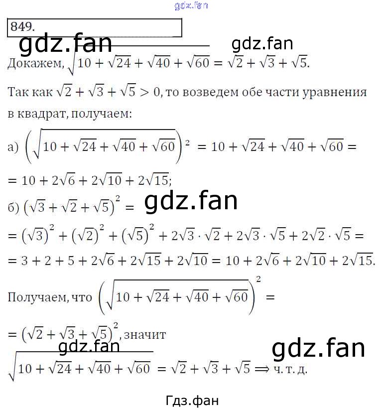 Проверка домашнего задания всегда занимает большое количество времени. На помощь приходит ГДЗ фан по Алгебре восьмого класса. Здесь собраны популярные ответы на 849 (стр. 301) Алгебра 8 класс Колягин Ю.М.