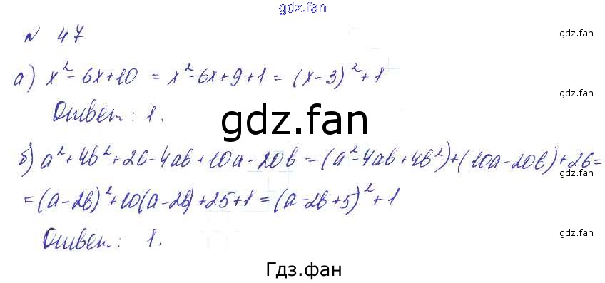 Проверка домашнего задания всегда занимает большое количество времени. На помощь приходит ГДЗ фан по Алгебре восьмого класса. Здесь собраны популярные ответы на 47 (стр. 20) Алгебра 8 класс Макарычев Ю.Н.