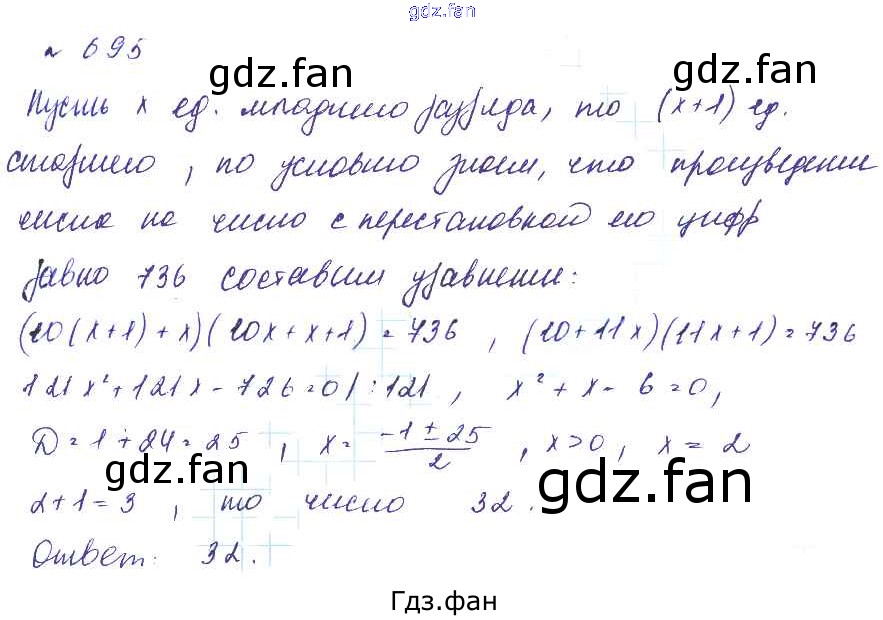 Проверка домашнего задания всегда занимает большое количество времени. На помощь приходит ГДЗ фан по Алгебре восьмого класса. Здесь собраны популярные ответы на 695 (стр. 194) Алгебра 8 класс Макарычев Ю.Н.