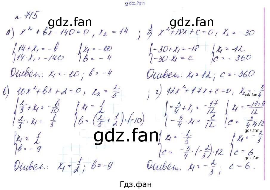 Проверка домашнего задания всегда занимает большое количество времени. На помощь приходит ГДЗ фан по Алгебре восьмого класса. Здесь собраны популярные ответы на 715 (стр. 201) Алгебра 8 класс Макарычев Ю.Н.