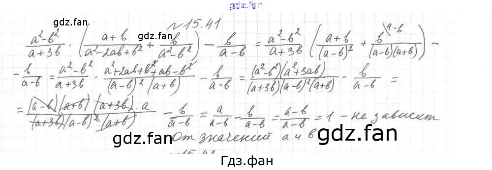 Проверка домашнего задания всегда занимает большое количество времени. На помощь приходит ГДЗ фан по Алгебре восьмого класса. Здесь собраны популярные ответы на 15.41 (стр. 113) Алгебра 8 класс Углубленный уровень Мерзляк А.Г.