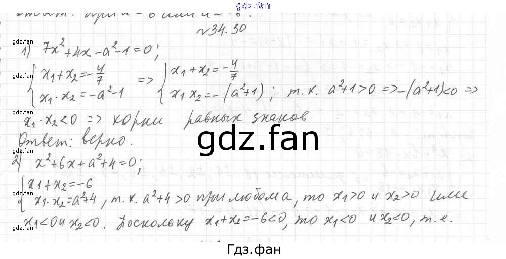 Проверка домашнего задания всегда занимает большое количество времени. На помощь приходит ГДЗ фан по Алгебре восьмого класса. Здесь собраны популярные ответы на 34.30 (стр. 295) Алгебра 8 класс Углубленный уровень Мерзляк А.Г.