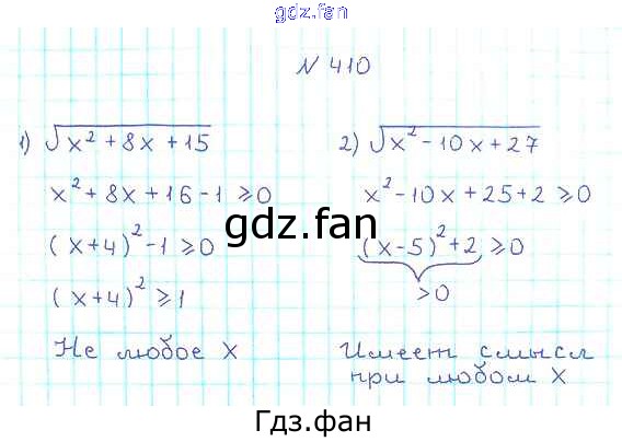 Проверка домашнего задания всегда занимает большое количество времени. На помощь приходит ГДЗ фан по Алгебре восьмого класса. Здесь собраны популярные ответы на 410 (стр. 103) Алгебра 8 класс Мерзляк А.Г.