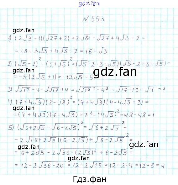 Проверка домашнего задания всегда занимает большое количество времени. На помощь приходит ГДЗ фан по Алгебре восьмого класса. Здесь собраны популярные ответы на 553 (стр. 140) Алгебра 8 класс Мерзляк А.Г.