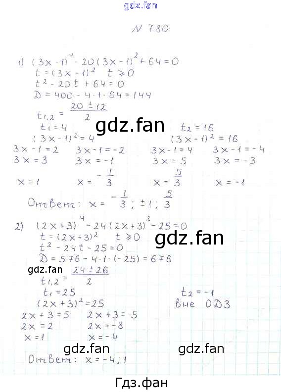 Проверка домашнего задания всегда занимает большое количество времени. На помощь приходит ГДЗ фан по Алгебре восьмого класса. Здесь собраны популярные ответы на 780 (стр. 189) Алгебра 8 класс Мерзляк А.Г.