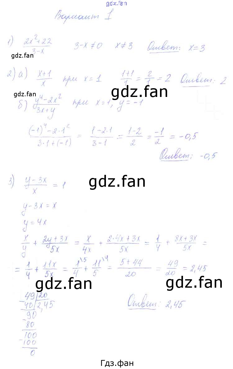 Проверка домашнего задания всегда занимает большое количество времени. На помощь приходит ГДЗ фан по Алгебре восьмого класса. Здесь собраны популярные ответы на 1 (стр. 7) Алгебра 8 класс контрольные и самостоятельные работы Попов М.А. (к уч. Мордковича А.Г.)