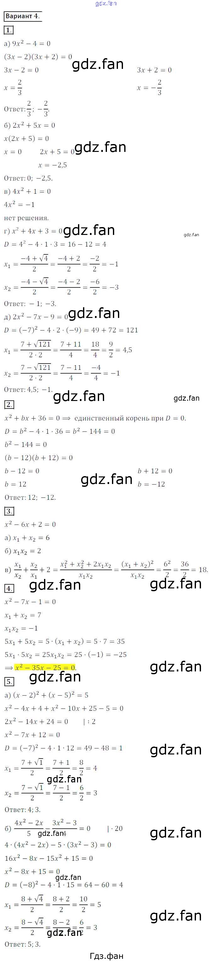 Проверка домашнего задания всегда занимает большое количество времени. На помощь приходит ГДЗ фан по Алгебре восьмого класса. Здесь собраны популярные ответы на вариант 4 (стр. 64) Алгебра 8 класс Дидактические материалы Потапов М.К.