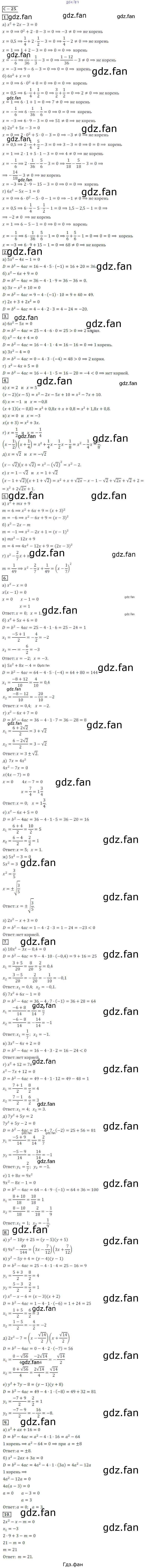 Проверка домашнего задания всегда занимает большое количество времени. На помощь приходит ГДЗ фан по Алгебре восьмого класса. Здесь собраны популярные ответы на СР №25 (стр. 77-78) Алгебра 8 класс Дидактические материалы Жохов В.И.