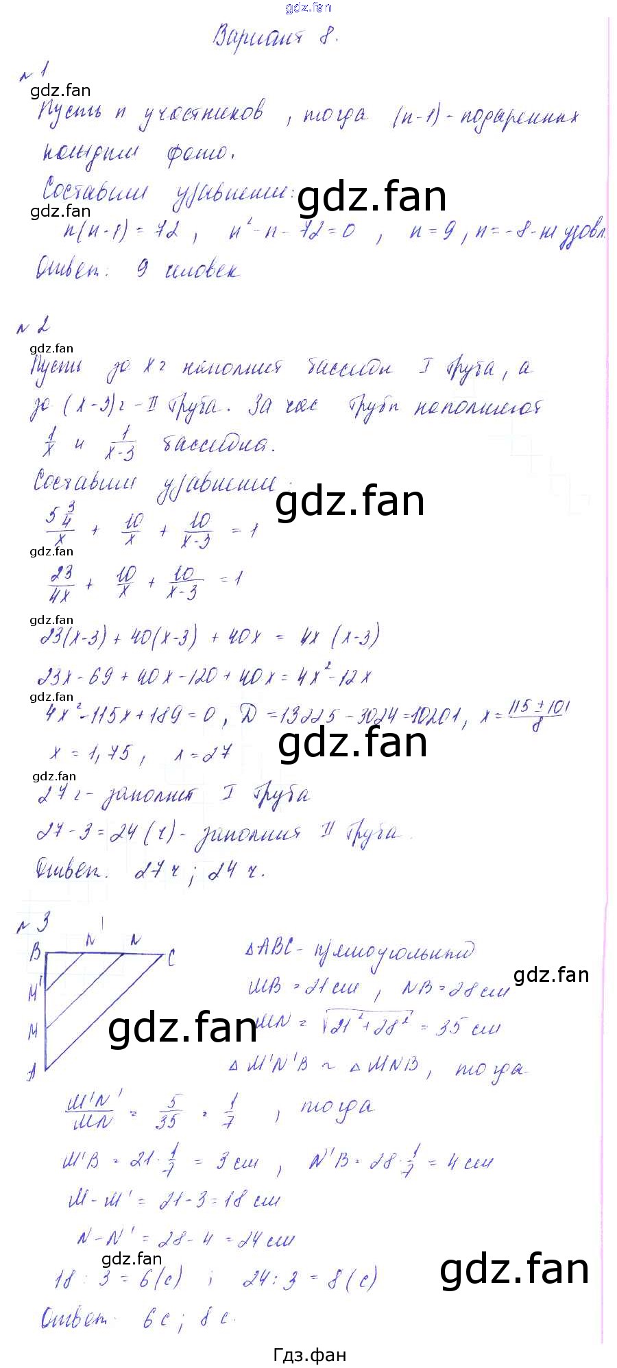 Проверка домашнего задания всегда занимает большое количество времени. На помощь приходит ГДЗ фан по Алгебре восьмого класса. Здесь собраны популярные ответы на Вариант-8 (стр. 49-50) Алгебра 8 класс Дидактические материалы Зив Б.Г.