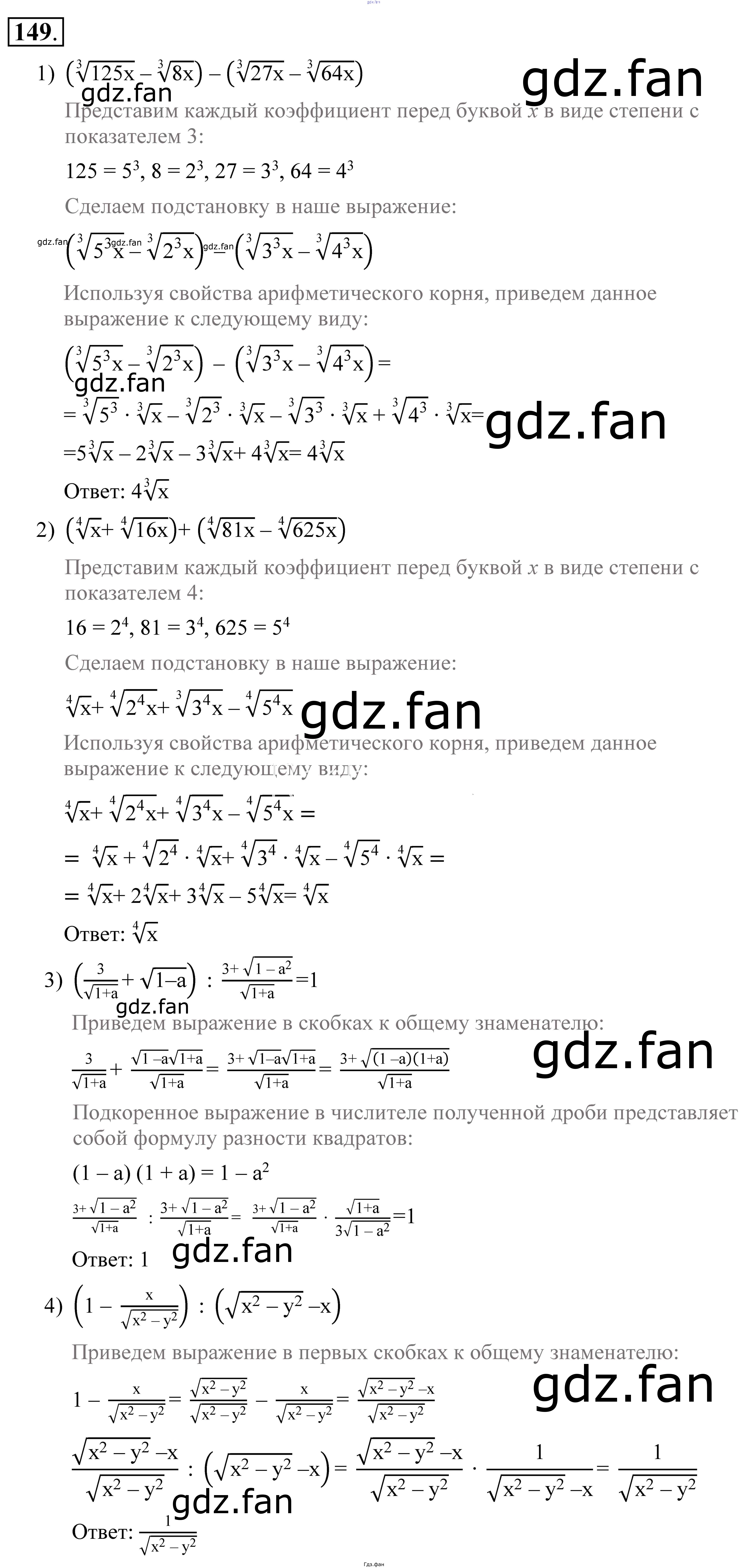 Проверка домашнего задания всегда занимает большое количество времени. На помощь приходит ГДЗ фан по Алгебре девятого класса. Здесь собраны популярные ответы на 149 (стр. 62) Алгебра 9 класс Алимов Ш. А.