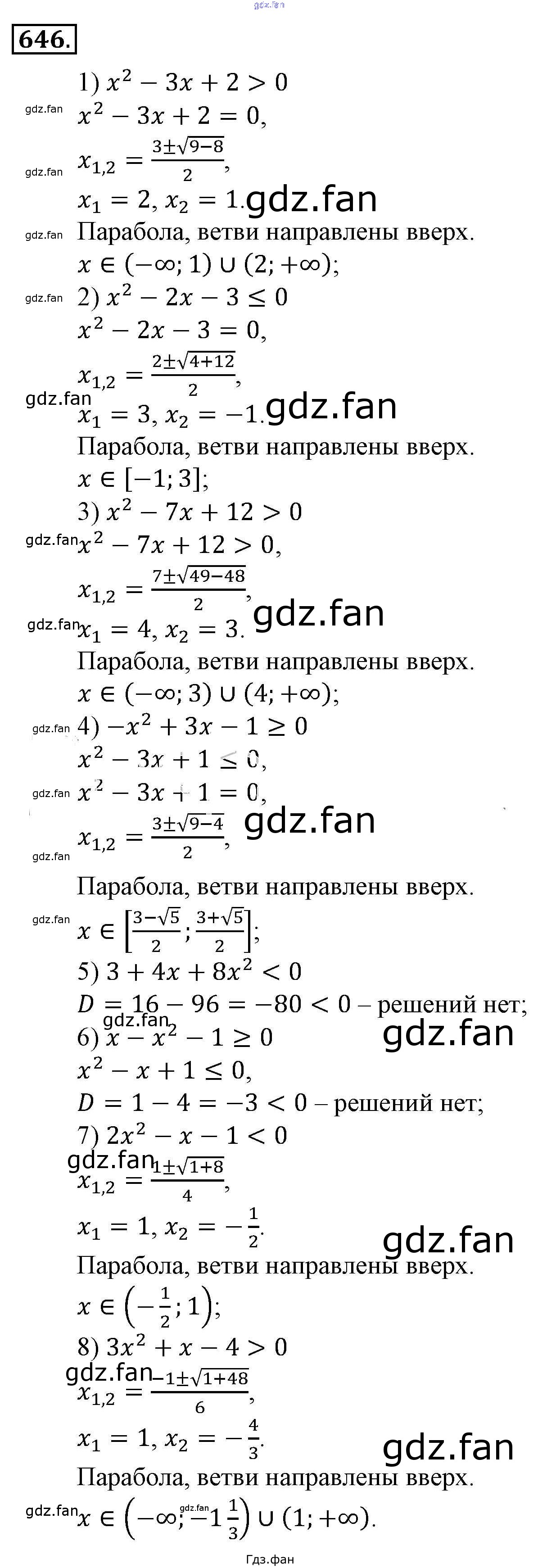 Проверка домашнего задания всегда занимает большое количество времени. На помощь приходит ГДЗ фан по Алгебре девятого класса. Здесь собраны популярные ответы на 646 (стр. 213) Алгебра 9 класс Алимов Ш. А.