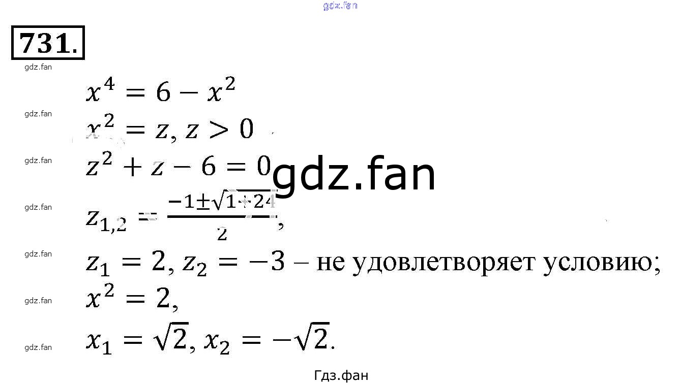 Проверка домашнего задания всегда занимает большое количество времени. На помощь приходит ГДЗ фан по Алгебре девятого класса. Здесь собраны популярные ответы на 731 (стр. 222) Алгебра 9 класс Алимов Ш. А.