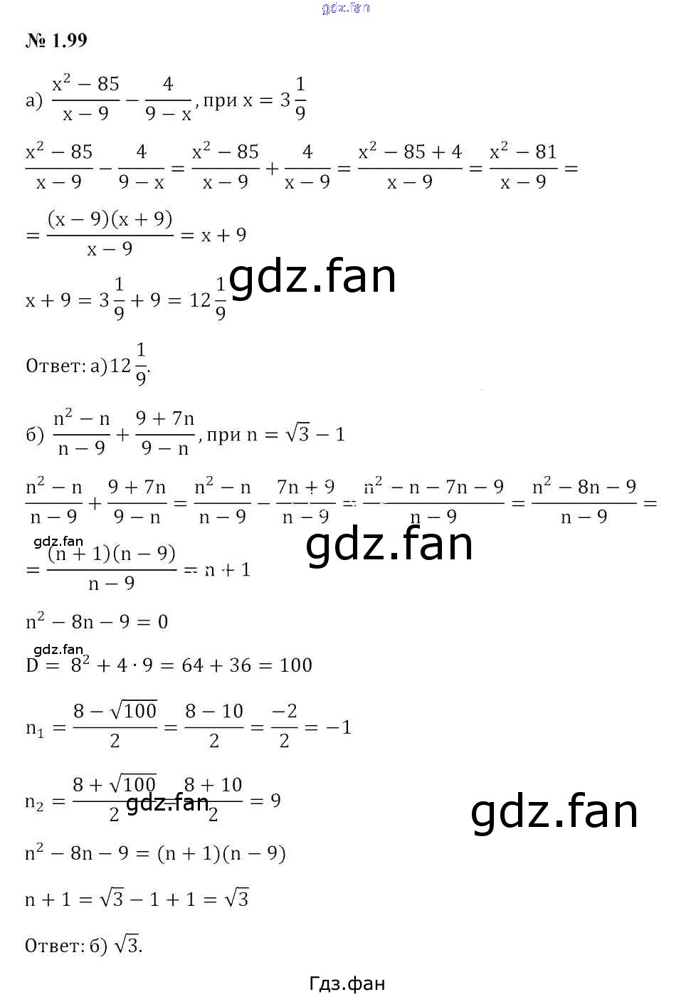 Проверка домашнего задания всегда занимает большое количество времени. На помощь приходит ГДЗ фан по Алгебре девятого класса. Здесь собраны популярные ответы на 1.99 (стр. 39) Алгебра 9 класс Арефьева И.Г.