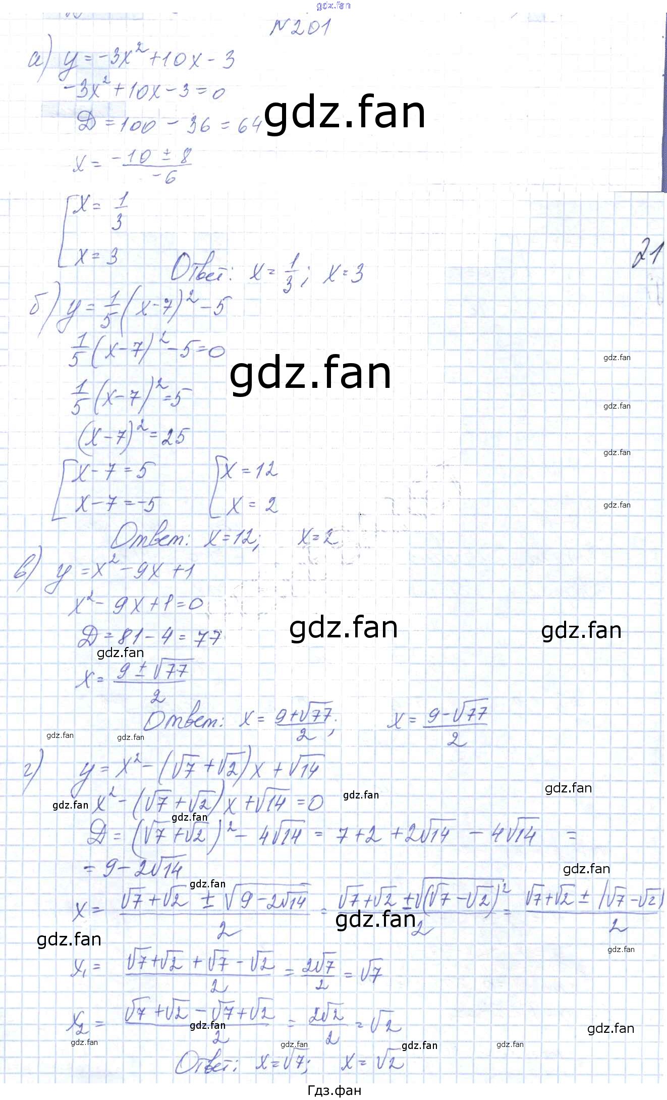 Проверка домашнего задания всегда занимает большое количество времени. На помощь приходит ГДЗ фан по Алгебре девятого класса. Здесь собраны популярные ответы на 201 (стр. 285) Алгебра 9 класс Арефьева И.Г.