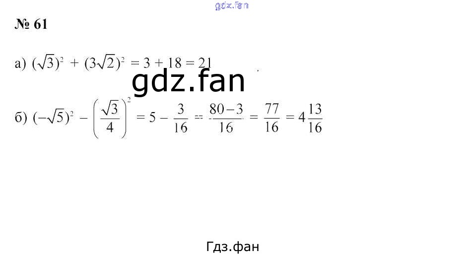 Проверка домашнего задания всегда занимает большое количество времени. На помощь приходит ГДЗ фан по Алгебре девятого класса. Здесь собраны популярные ответы на 61 (стр. 271) Алгебра 9 класс Арефьева И.Г.
