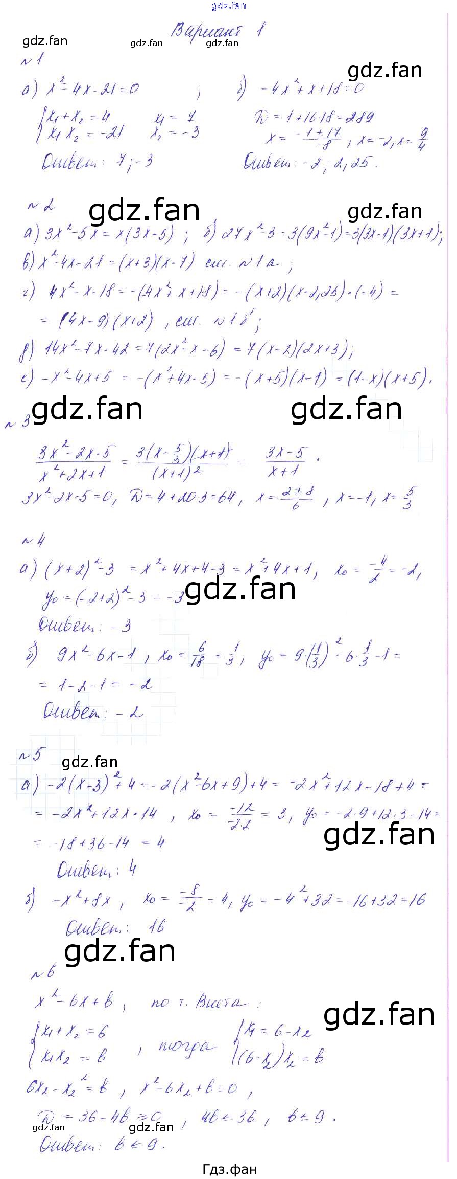 Проверка домашнего задания всегда занимает большое количество времени. На помощь приходит ГДЗ фан по Алгебре девятого класса. Здесь собраны популярные ответы на вариант 1 (стр. 196) Алгебра 9 класс Дидактические материалы Звавич Л.А. (к уч. Макарычева)
