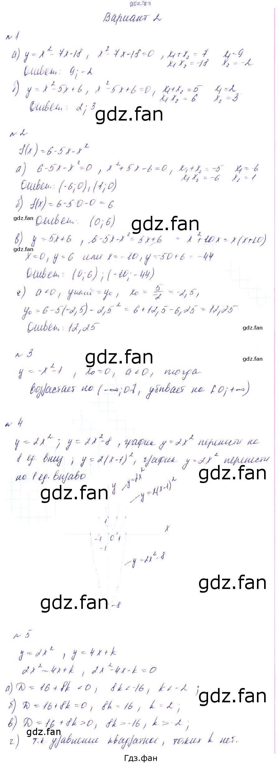 Проверка домашнего задания всегда занимает большое количество времени. На помощь приходит ГДЗ фан по Алгебре девятого класса. Здесь собраны популярные ответы на вариант 2 (стр. 199-200) Алгебра 9 класс Дидактические материалы Звавич Л.А. (к уч. Макарычева)