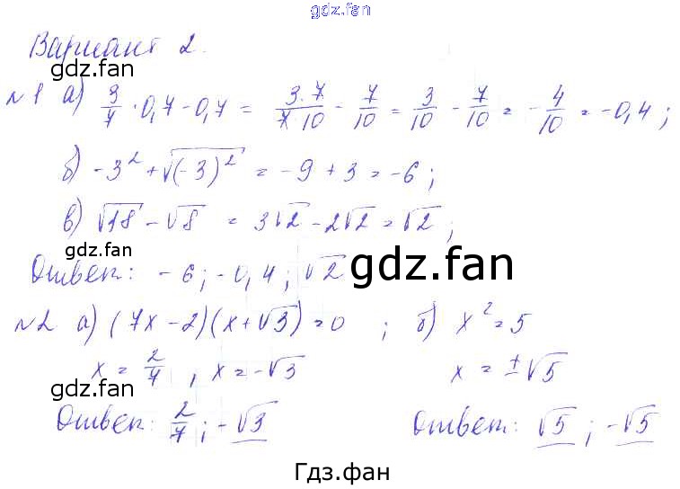 Проверка домашнего задания всегда занимает большое количество времени. На помощь приходит ГДЗ фан по Алгебре девятого класса. Здесь собраны популярные ответы на Вариант 2 (стр. 95) Алгебра 9 класс Дидактические материалы Евстафьева Л.П.
