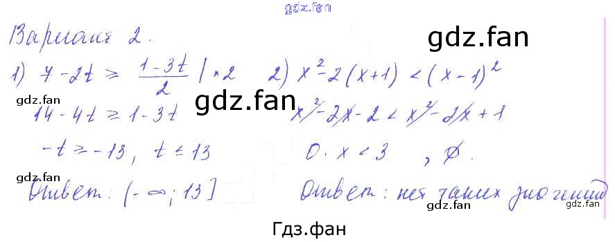 Проверка домашнего задания всегда занимает большое количество времени. На помощь приходит ГДЗ фан по Алгебре девятого класса. Здесь собраны популярные ответы на Вариант 2 (стр. 100) Алгебра 9 класс Дидактические материалы Евстафьева Л.П.