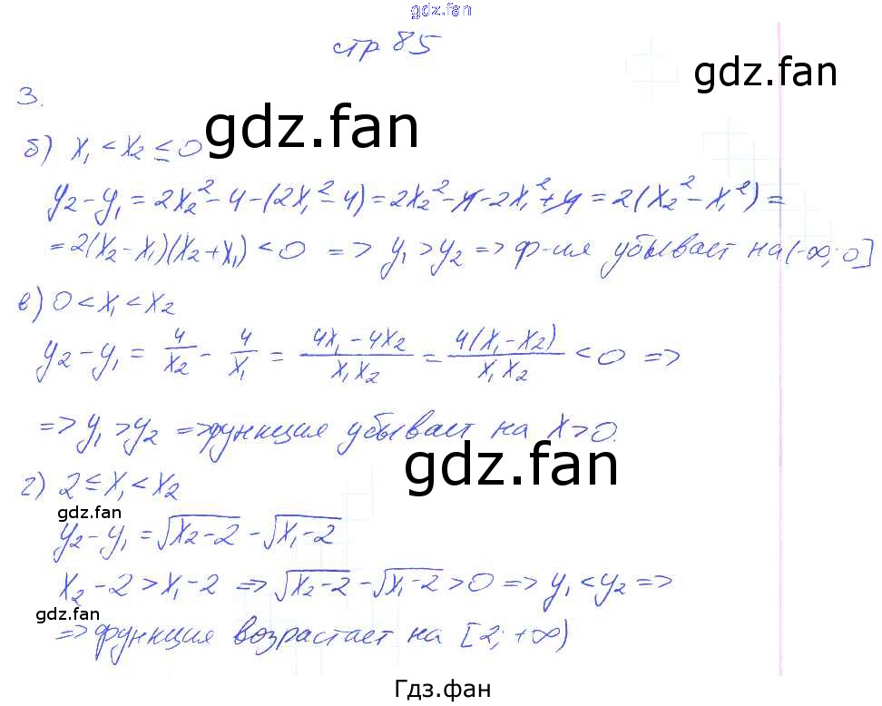 Проверка домашнего задания всегда занимает большое количество времени. На помощь приходит ГДЗ фан по Алгебре девятого класса. Здесь собраны популярные ответы на 3 (стр. 85) Алгебра 9 класс рабочая тетрадь Ключникова Е.М. (к уч. Мордковича)