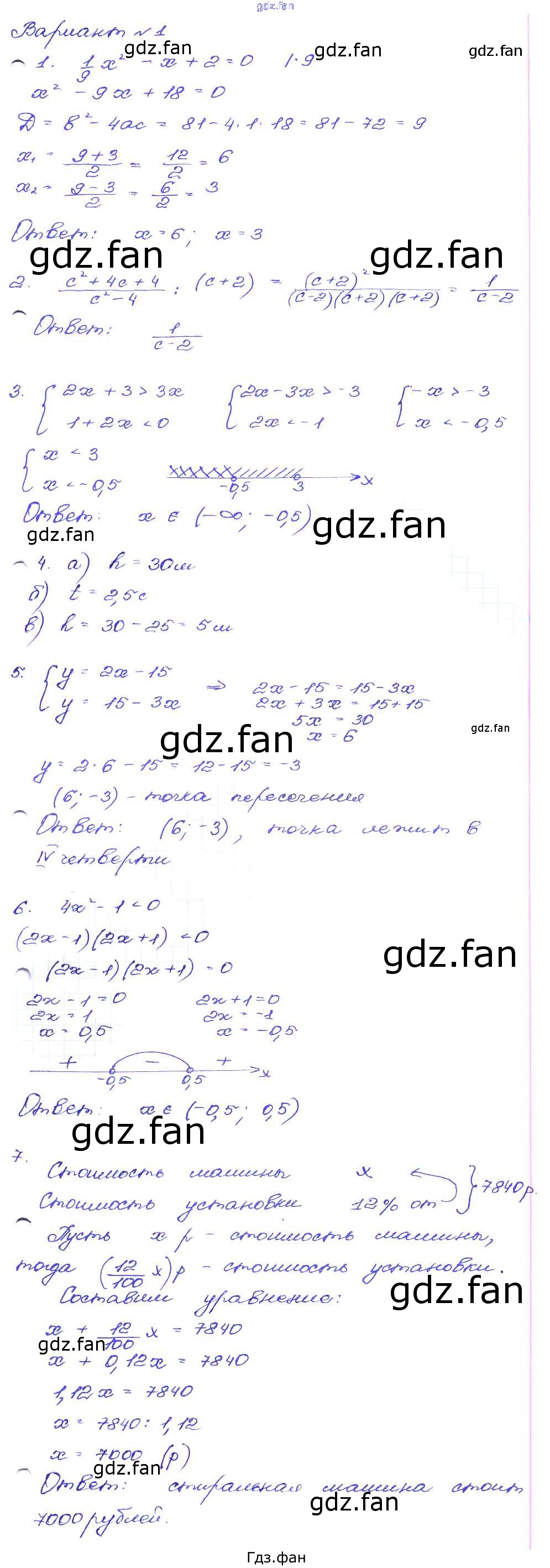 Проверка домашнего задания всегда занимает большое количество времени. На помощь приходит ГДЗ фан по Алгебре девятого класса. Здесь собраны популярные ответы на Вариант 1 (стр. 55) Алгебра 9 класс сборник заданий Кузнецова Л.В.
