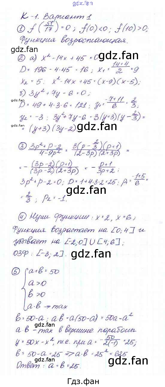 Проверка домашнего задания всегда занимает большое количество времени. На помощь приходит ГДЗ фан по Алгебре девятого класса. Здесь собраны популярные ответы на Вариант 1 (стр. 61) Алгебра 9 класс Дидактические материалы Макарычев Ю.Н.