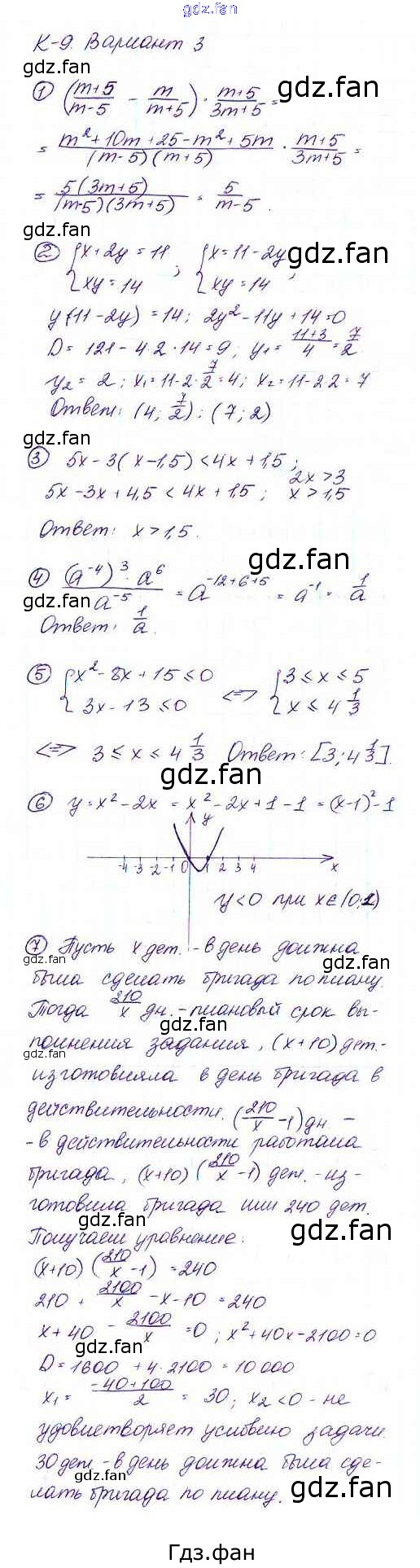 Проверка домашнего задания всегда занимает большое количество времени. На помощь приходит ГДЗ фан по Алгебре девятого класса. Здесь собраны популярные ответы на Вариант 3 (стр. 80) Алгебра 9 класс Дидактические материалы Макарычев Ю.Н.