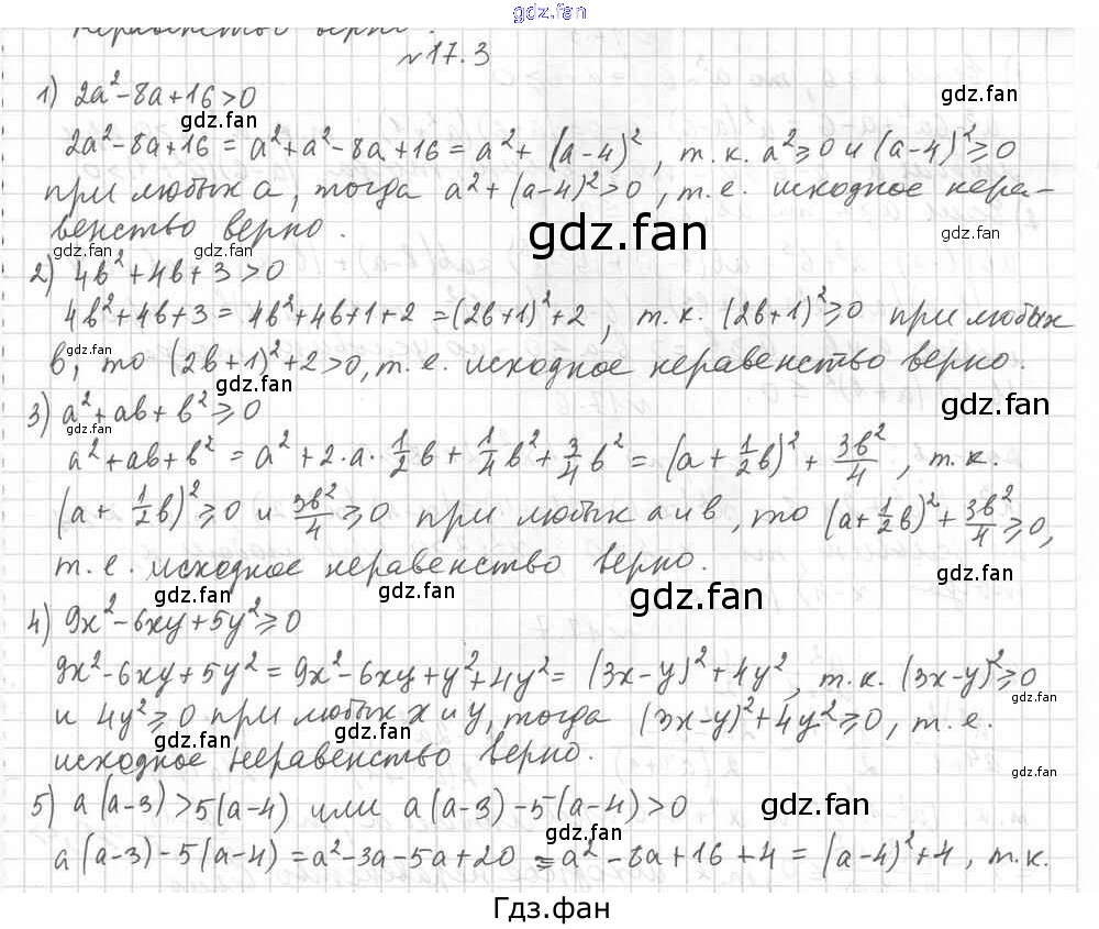 Проверка домашнего задания всегда занимает большое количество времени. На помощь приходит ГДЗ фан по Алгебре девятого класса. Здесь собраны популярные ответы на 17.3 (стр. 168) Алгебра 9 класс Углубленный уровень Мерзляк А.Г.