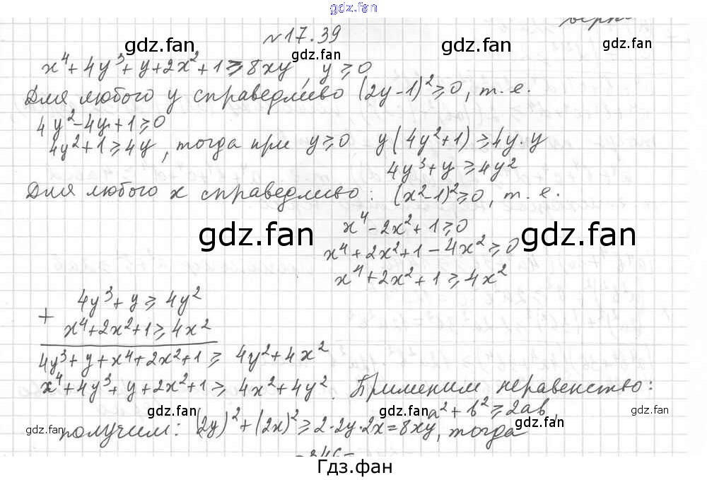 Проверка домашнего задания всегда занимает большое количество времени. На помощь приходит ГДЗ фан по Алгебре девятого класса. Здесь собраны популярные ответы на 17.39 (стр. 170) Алгебра 9 класс Углубленный уровень Мерзляк А.Г.