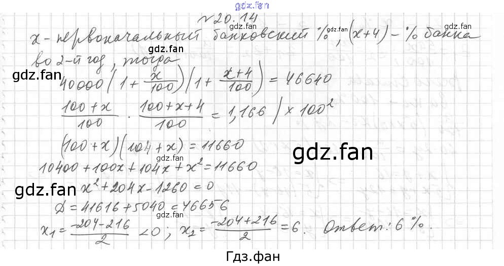Проверка домашнего задания всегда занимает большое количество времени. На помощь приходит ГДЗ фан по Алгебре девятого класса. Здесь собраны популярные ответы на 20.14 (стр. 206) Алгебра 9 класс Углубленный уровень Мерзляк А.Г.