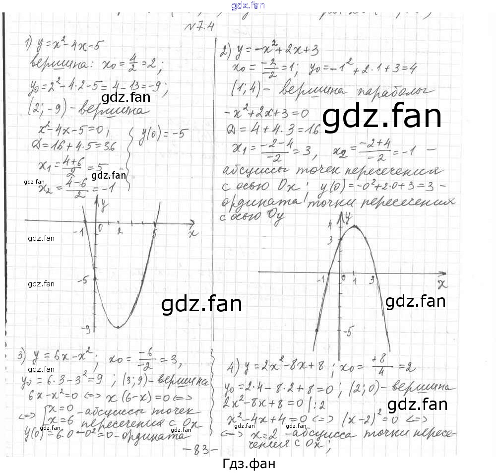 Проверка домашнего задания всегда занимает большое количество времени. На помощь приходит ГДЗ фан по Алгебре девятого класса. Здесь собраны популярные ответы на 7.4 (стр. 74) Алгебра 9 класс Углубленный уровень Мерзляк А.Г.