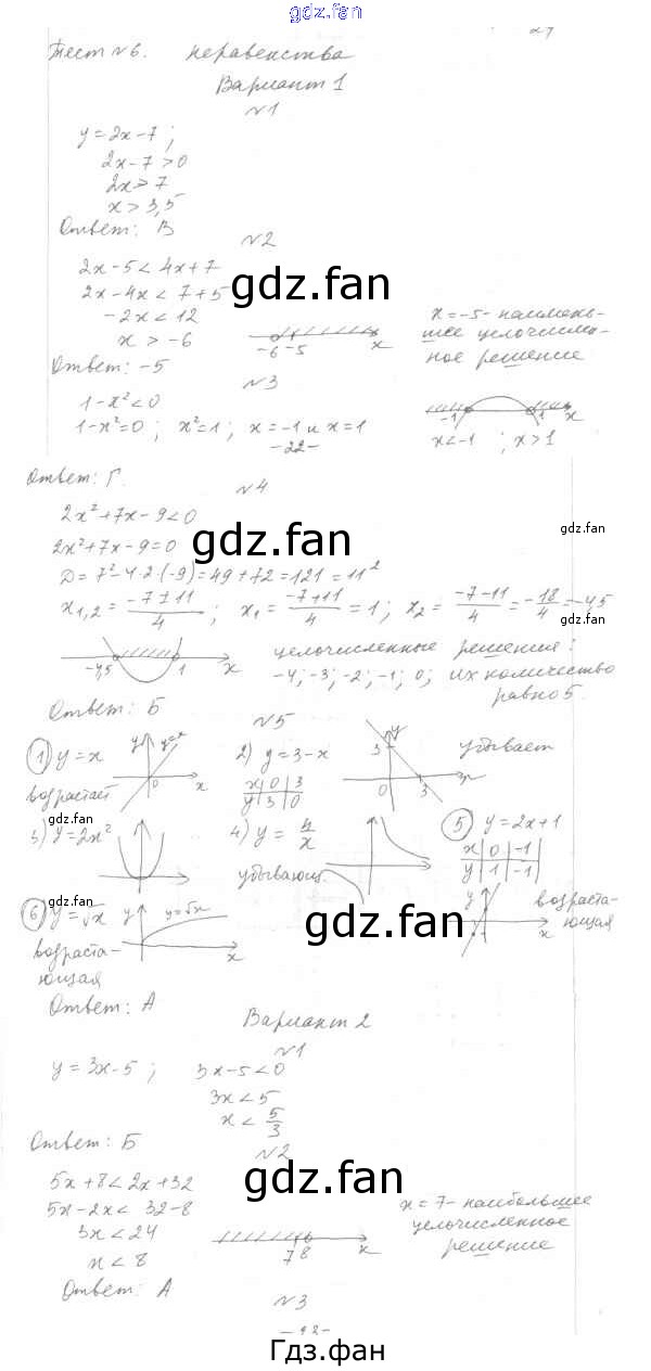 Проверка домашнего задания всегда занимает большое количество времени. На помощь приходит ГДЗ фан по Алгебре седьмого класса. Здесь собраны популярные ответы на Тест №6 (стр. 72-75) Алгебра 7-9 класс тесты Мордкович А.Г.